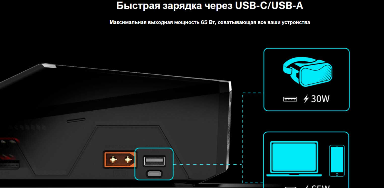 - Мощность зарядки: 250 Вт @ MAX 15 А * 4