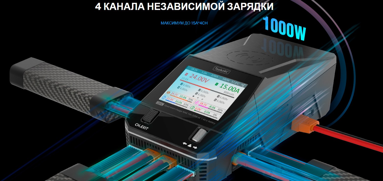 Зарядное устройство ToolkitRC Q6AC Quad charger AC/DC 400W/1000W TK12900