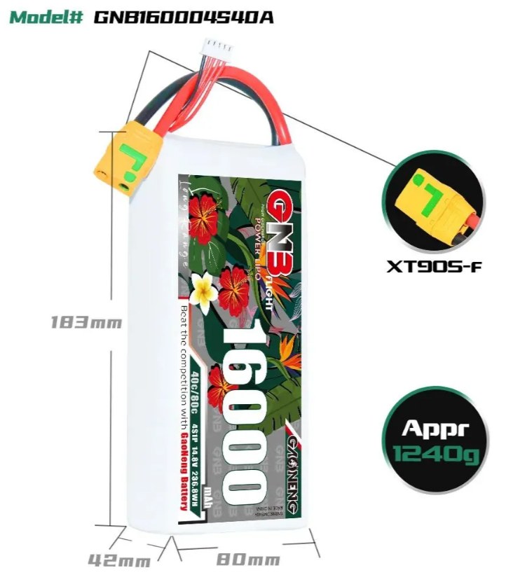Купить Аккумулятор Li-po Gaoneng GNB 16000mah 4S1P 14.8V 40C 42x80x183mm GNB160004S40A