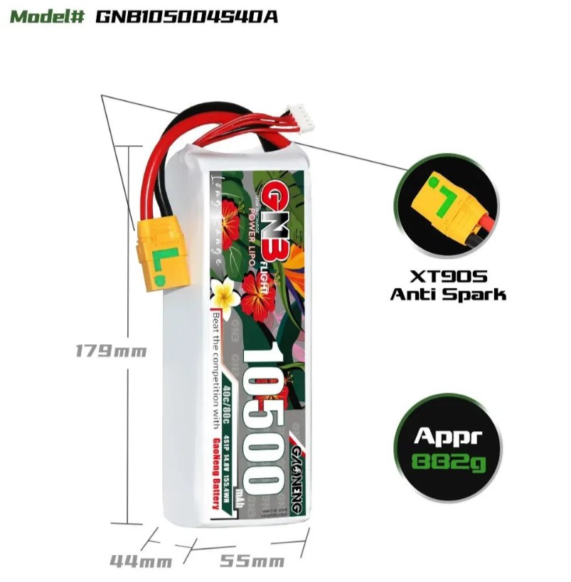 Аккумулятор Li-po Gaoneng GNB 10500mah 4S1P 14.8V 40C 47x55x179mm GNB105004S40A