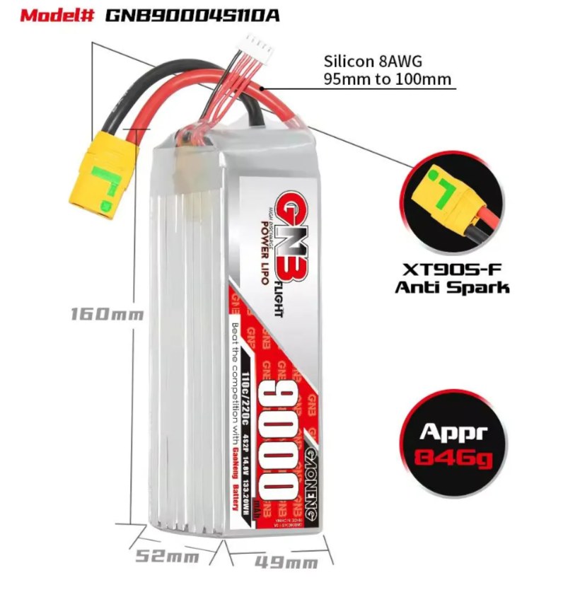 Аккумулятор Li-po Gaoneng GNB 9000mah 4S2P 14.8V 110C 52x49x160mm XT90 GNB90004S110A купить