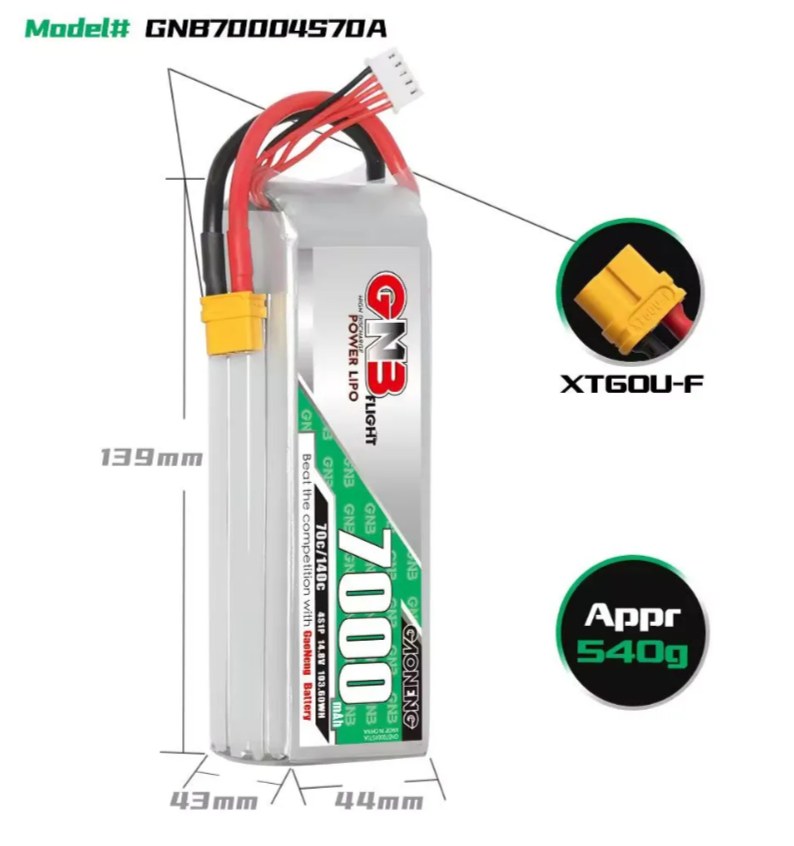 Аккумулятор Li-po Gaoneng GNB 7000mah 4S1P 14.8V 70C 43x44x139mm XT60 GNB70004S70A