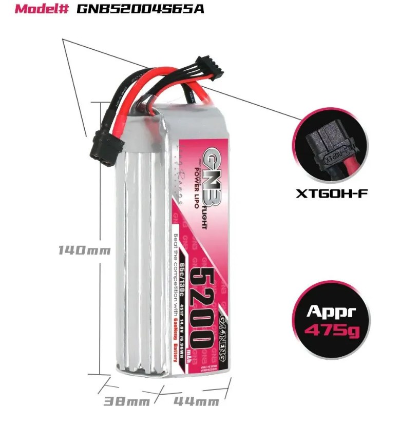 Аккумулятор Li-po Gaoneng GNB 5200mah 4S1P 14.8V 65C 38x44x140mm GNB52004S65A
