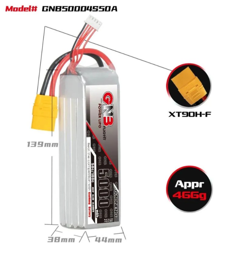 Аккумулятор Li-po Gaoneng GNB 5000mah 4S1P 14.8V 50C 38x44x139mm GNB50004S50A