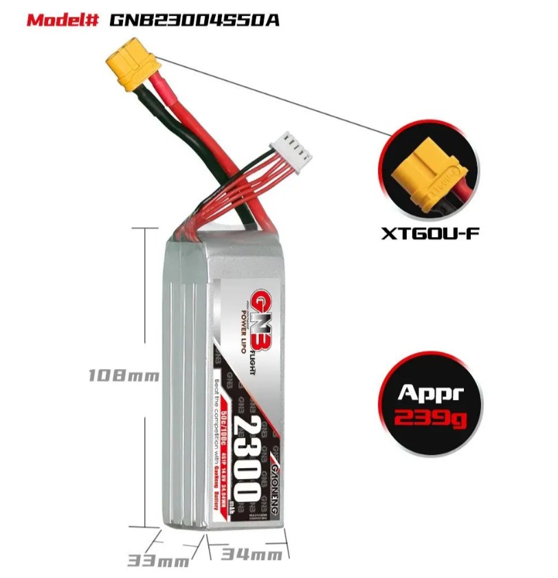 Аккумулятор Li-po Gaoneng GNB 2300mah 4S1P 14.8V 50C 33x34x108mm GNB23004S50A