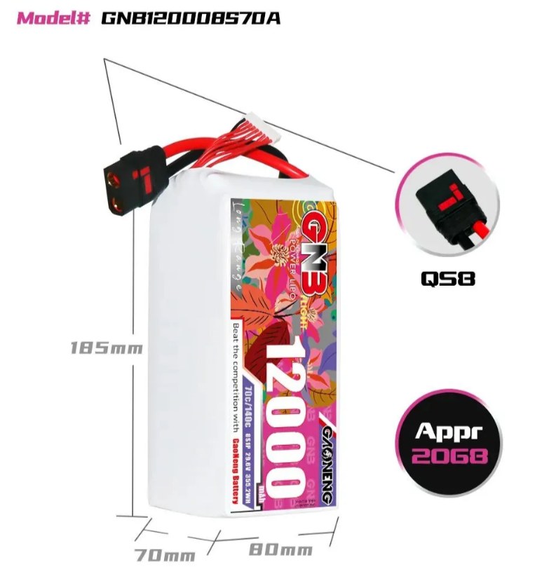 Аккумулятор Li-po Gaoneng GNB 12000mah 8S1P 29.6V 70C 70x80x185mm GNB120008S70A