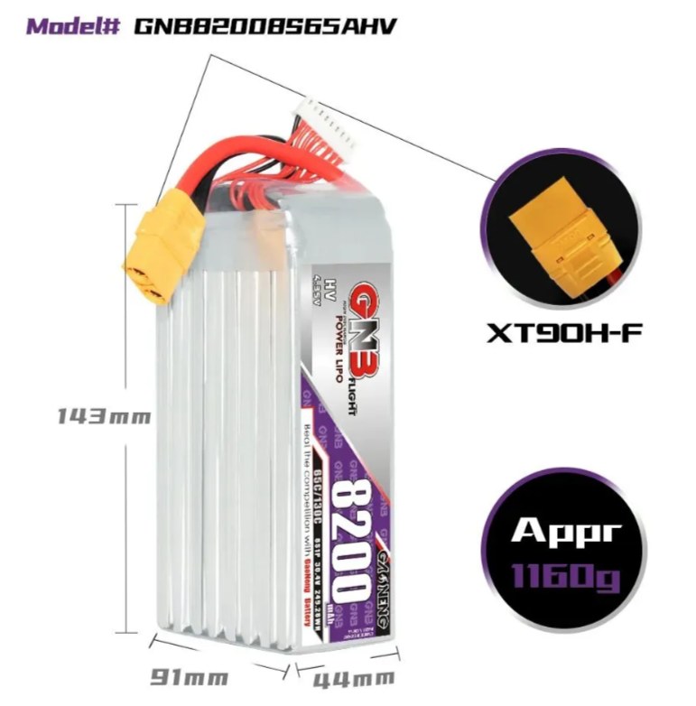 Аккумулятор Li-po Gaoneng GNB 8200mah 8S1P 30.4V HV 65C 91x44x143mm GNB82008S65AHV