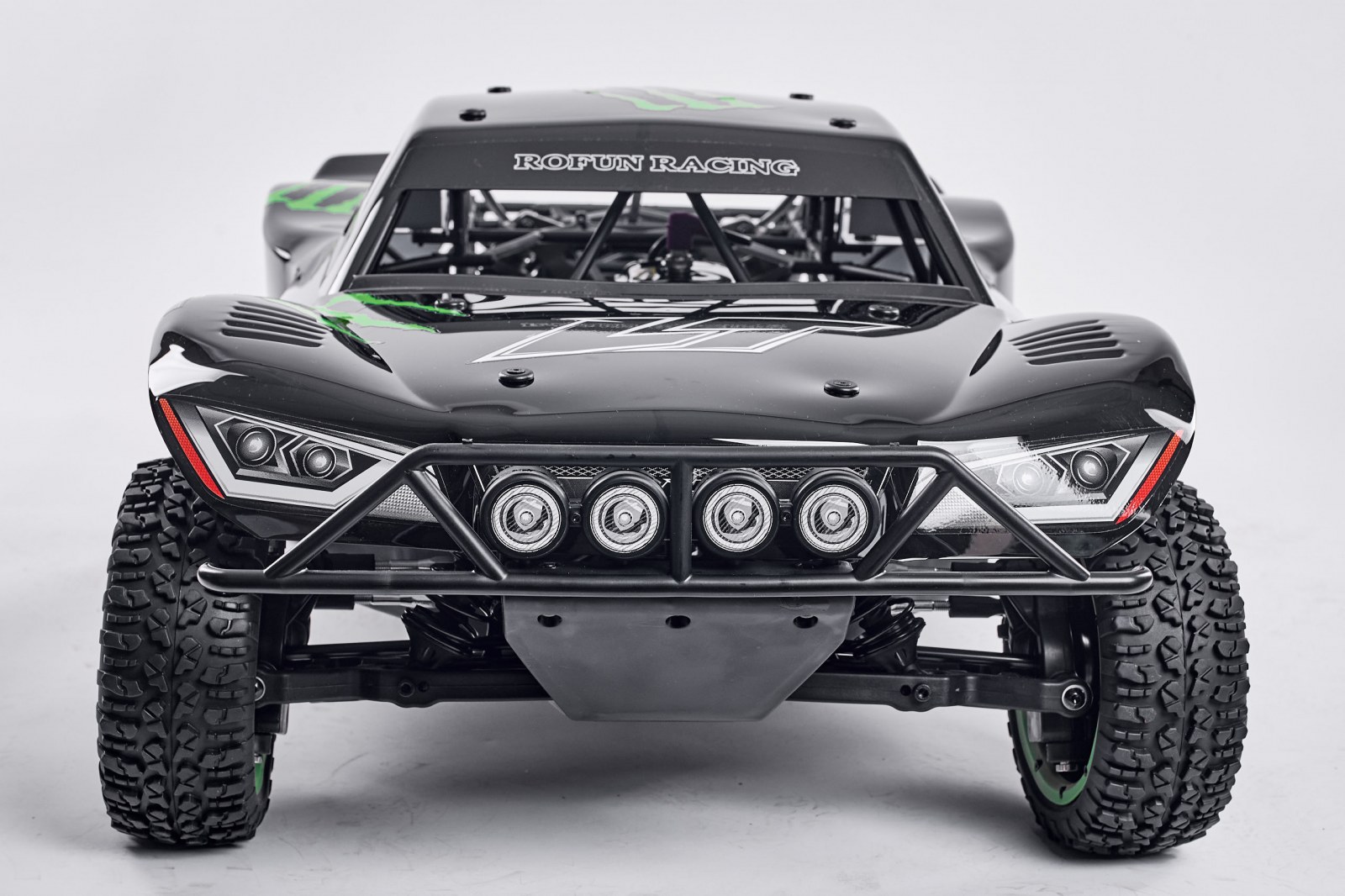 ROFUN E-BLT 750KV/200A BLACK 2WD — это электрическая радиоуправляемая модель шорт-корса в масштабе 1:5, предназначенная для захватывающих гонок по бездорожью. С впечатляющей длиной почти 1 метр и внушительной массой, модель сочетает в себе мощь, устойчивость и простоту управления.