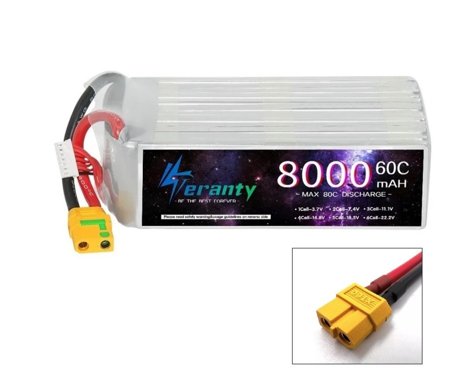 Аккумулятор LiPo Teranty 8000 мАч 60C 22.2V XT60 (TER-8000-60-6S) — 6S питание для квадрокоптеров и дронов