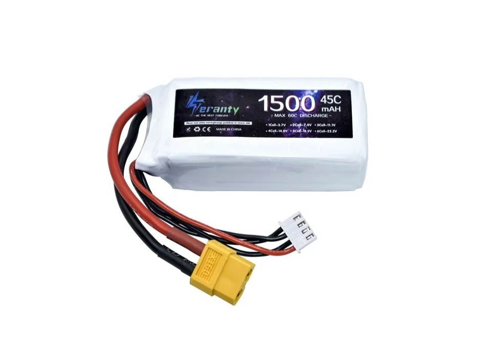 Teranty 1500 мАч 45C 14.8V XT60 — лёгкий и мощный 4S LiPo-аккумулятор, идеально подходящий для FPV-дронов и гоночных квадрокоптеров. Компактный, стабильный и надёжный — идеальный выбор для пилотов, ценящих баланс веса и производительности.