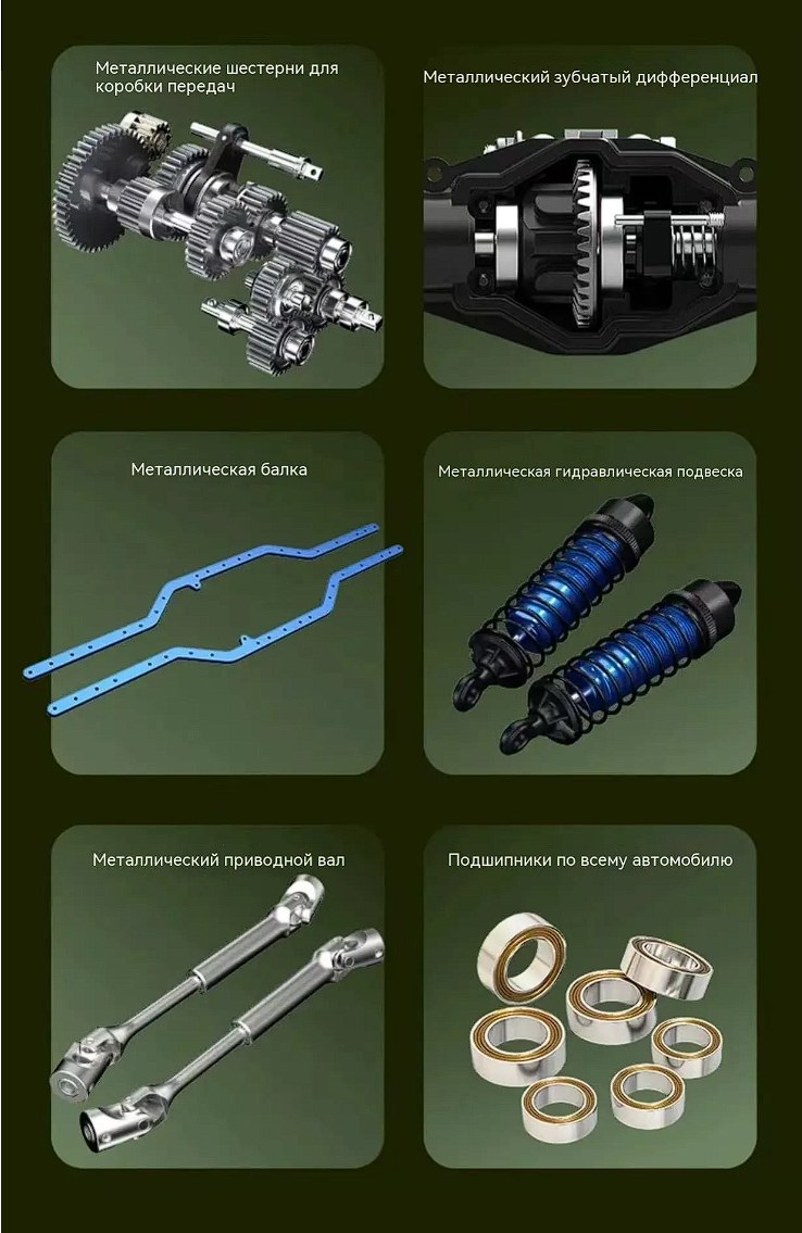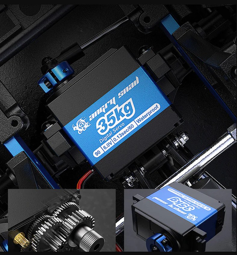 Главная особенность модели — универсальность. Она одинаково хорошо подходит для медленного техничного краулинга и динамичных заездов. Благодаря двухскоростной трансмиссии и мощному бесколлекторному мотору модель легко адаптируется под любые условия.