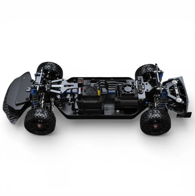 В основе модели установлен сенсорный бесколлекторный мотор 3652 3200KV, обеспечивающий быстрый разгон, уверенную максимальную скорость и стабильную работу под нагрузкой. Электронный регулятор скорости 80A ESC поддерживает Bluetooth-подключение, позволяя настраивать параметры машины через мобильное приложение.