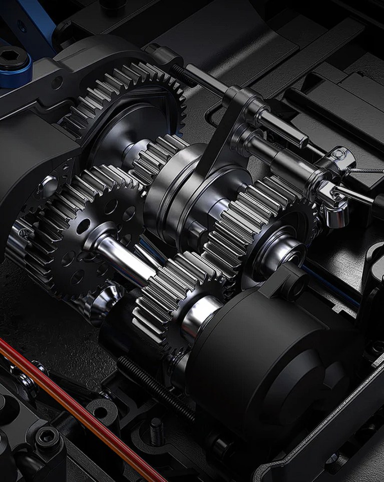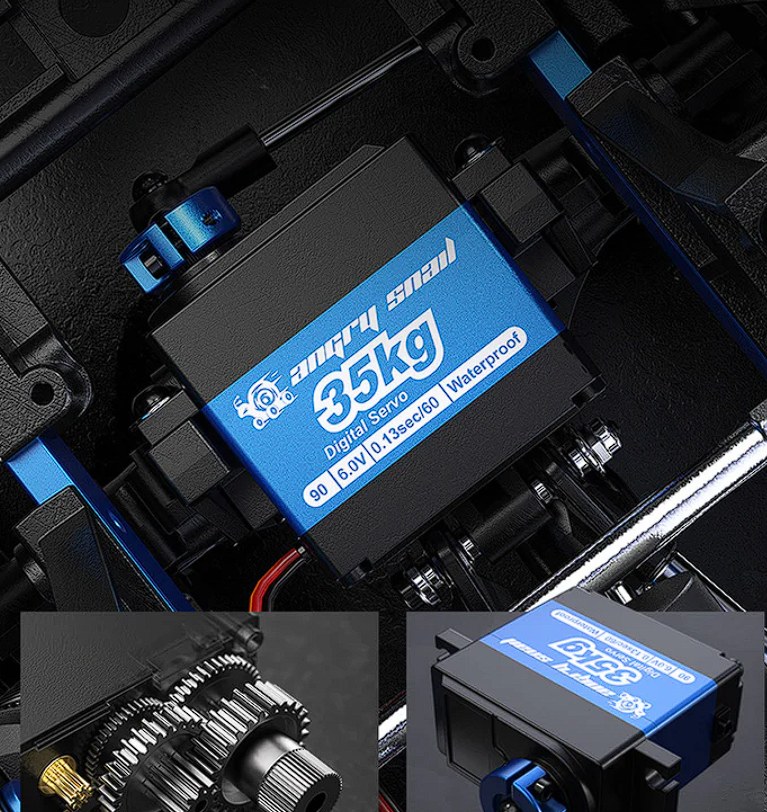 Электроника имеет степень защиты IP67, что позволяет использовать модель в воде, грязи и снегу. Вся трансмиссия выполнена из металла: шестерни, карданы и тяги, что гарантирует высокую прочность и долговечность.